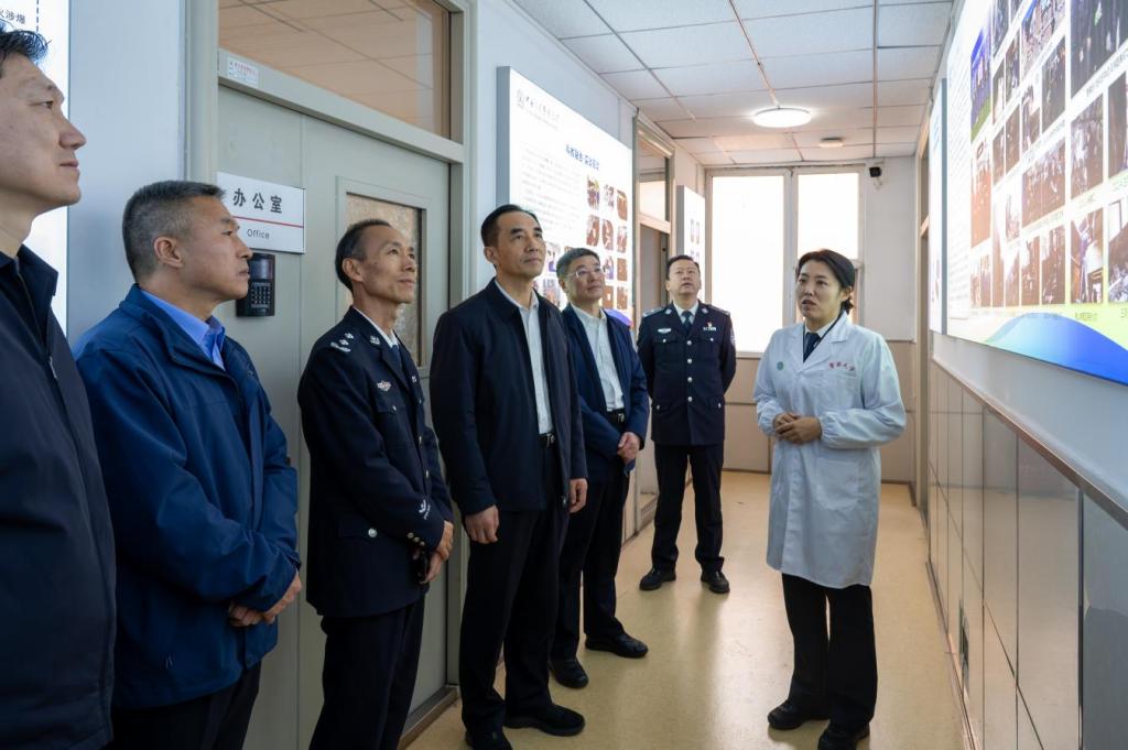 在校考察期间,房庆忠一行参观了校史馆、维和展室,实地考察了合成作战指挥中心、警卫指挥与战术实验室、警用无人机反制实验室、环境资源与食品药品犯罪侦查实验室、物证鉴定中心、海外安全防范与危机管理实验室等实验实训场所。