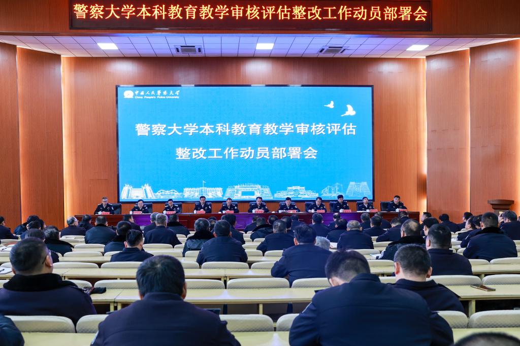 会上,吴立志从凝聚协同攻坚合力、弥补教育教学质量关键不足、坚定建设一流公安本科教育发展信心三个方面,分析了学校迎评工作取得的突出成效。从对照评估整改工作要求、其他高校整改经验、未来奋斗目标三个维度,分析了学校立足长远狠抓评估整改的主要原因。并从六个方面部署了评估整改任务:一是坚持党的绝对领导,巩固强化“立德树人、三全育人、五育并举”工作机制。二是持续更新教育教学理念,改革完善专业建设机制和本科人才培养模式。三是建设各类优质资源,全面提升办学条件资源保障能力。四是加强师资队伍建设,有效激发教师教学改革和科研攻关活力。五是落实学生中心地位,优化健全服务学生成长发展机制。六是健全质量保障体系,积极营造全员认同的质量文化氛围。