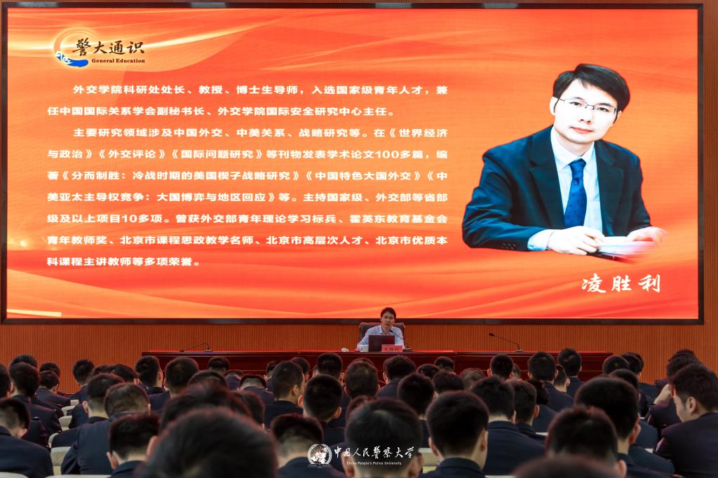 2026年4月17日,外交学院凌胜利教授受邀做客中国人民警察大学通识讲坛,作“当前中国周边安全形势分析”专题报告。我校600余名师生代表在主会场聆听,广州校区全体师生通过网络直播同步收看。
