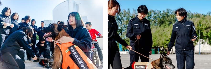 同学们纷纷举起手机记录美好瞬间,或与搜救犬并肩合影,或邀请训导员一同入镜,笑容灿烂。大家表示,能近距离接触搜救犬并合影十分有意义,不仅认识到它们在救援中的重要作用,也感受到与训导员的深厚情谊。轻松愉快的互动中,大家对搜救犬的习性、训练与应用有了更深入了解,进一步激发了对紧急救援工作的热情与关注。