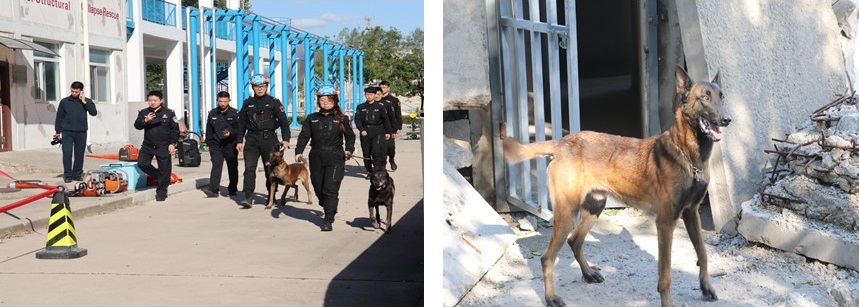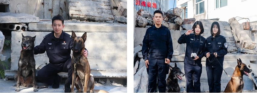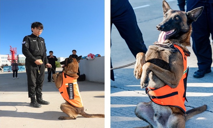 场景模拟演示:在狭小的模拟废墟中,搜救犬“麦克”如箭冲入现场,敏锐锁定目标并吠叫示警;搜救犬“杰克”随即再次确认位置,双重验证下“被困者”成功获救。